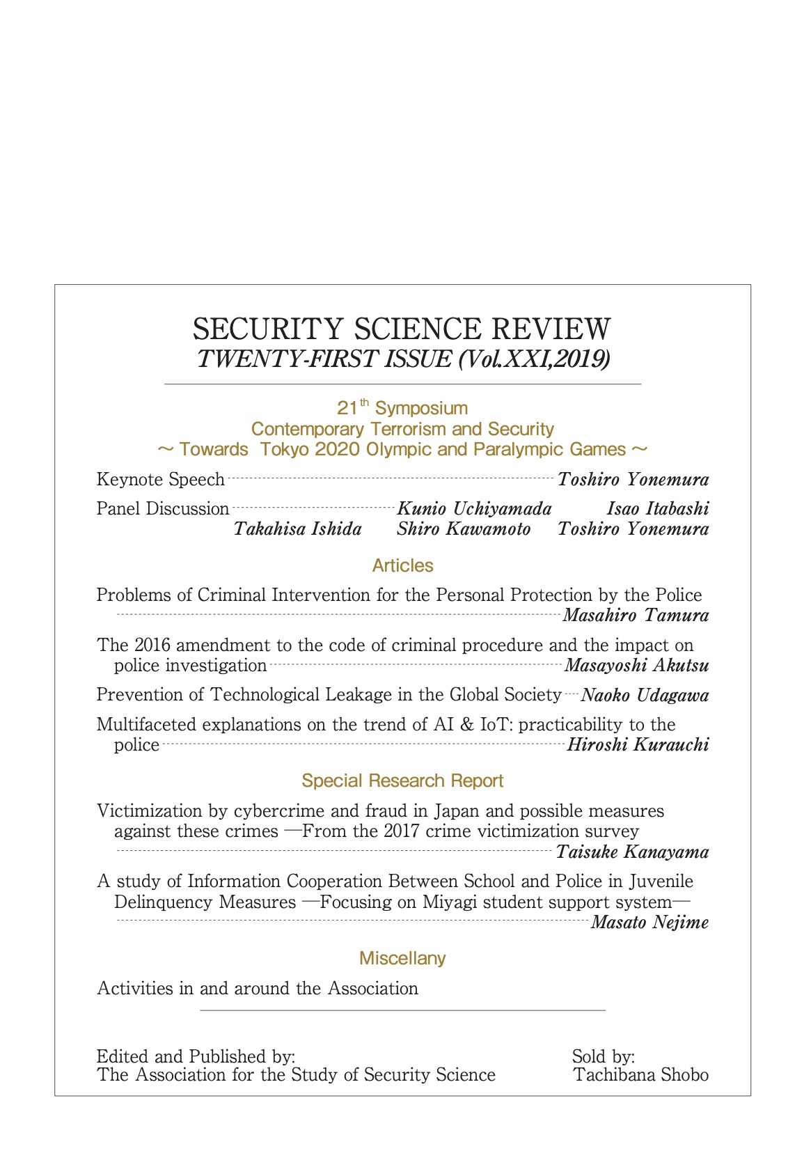 トップページ > English > Publication > Security Science Review Vol21 (2019)